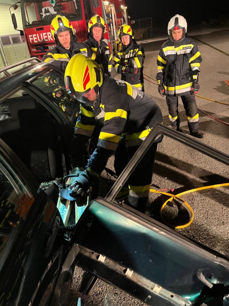 Am Montag, dem 6. Oktober 2025, fand wieder eine U21-Übung statt. Thema war die technische Hilfeleistung bei einem Verkehrsunfall mit eingeklemmter Person. Nach einer kurzen theoretischen Einführung und Sicherheitsunterweisung wurden die unterstützenden Maßnahmen bei einem derartigen Einsatz im Stationenbetrieb näher gebracht. Dazu zählt: Aufbau des Brandschutzes, der Beleuchtung sowie der Bereitstellungplane (auf welcher alle Geräte für die technische Rettung zu finden sind) und sichern und stabilisieren des verunfallten Fahrzeuges. Zuletzt konnte sich jeder mit der Bedienung und Handhabung der hydraulischen Rettungsgeräte vertraut machen. Es wurde beübt schnellstmöglich, effizient und sicher die Fenster zu „körnern“ und eine Autotür sowie die B-Säule zu entfernen.