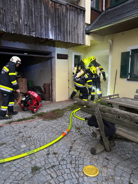 Am Einsatzort angekommen stellte sich folgendes Szenario dar: Es gab eine starke Verrauchung im Wohngebäude das an den Stall angrenzend, mehrere Personen wurden vermisst, darunter Jugendliche. Nachdem sich die Anzahl der vermissten Personen nicht eindeutig klären lies, wurde mit einem Suchtrupp, ausgestattet mit Wärmebildkamera, der Bereich ums Wohnhaus abgesucht. Dabei wurden weitere Jugendliche aufgefunden. Für die Feuerwehren St. Radegund und Plenzengreith bestand die Aufgabe, mit schwerem Atemschutz ins Innere des Wohngebäudes zu gelangen um eine Personenrettung und einen Löschangriff durchzuführen. Weiters waren die feuerwehrinternen Sanitäter gefragt, um diverse Verletzungen zu versorgen.