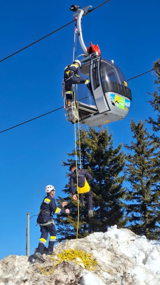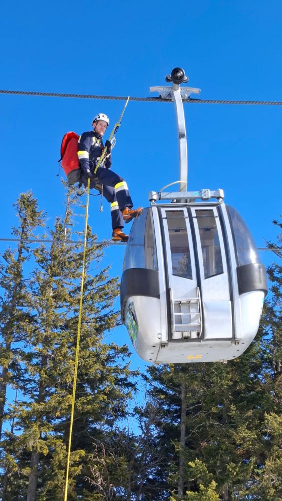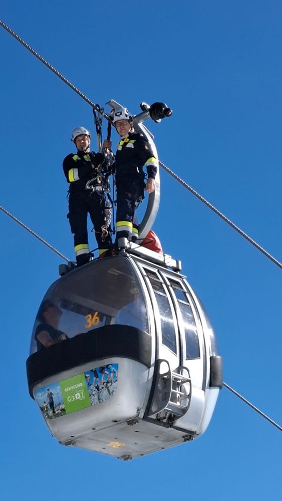 Die Seiltechniker der FF St. Radegund übten am 28.02.2026 gemeinsam mit dem Roten Kreuz und der Bergrettung das Retten von Personen aus den Gondeln der Schöcklseilbahn. Im Fall eines technischen Gebrechen kann diese Übungsannahme schnell zur Wirklichkeit werden. Die Übung diente dazu, die einzelnen Schritte und Abläufe zu festigen und die Technik zu perfektionieren, um im Einsatzfall rasch und sicher Hilfe leisten zu können. Insgesamt waren über 100 Einsatzkräfte beteiligt, die über 40 Personen aus den Gondeln retteten.
